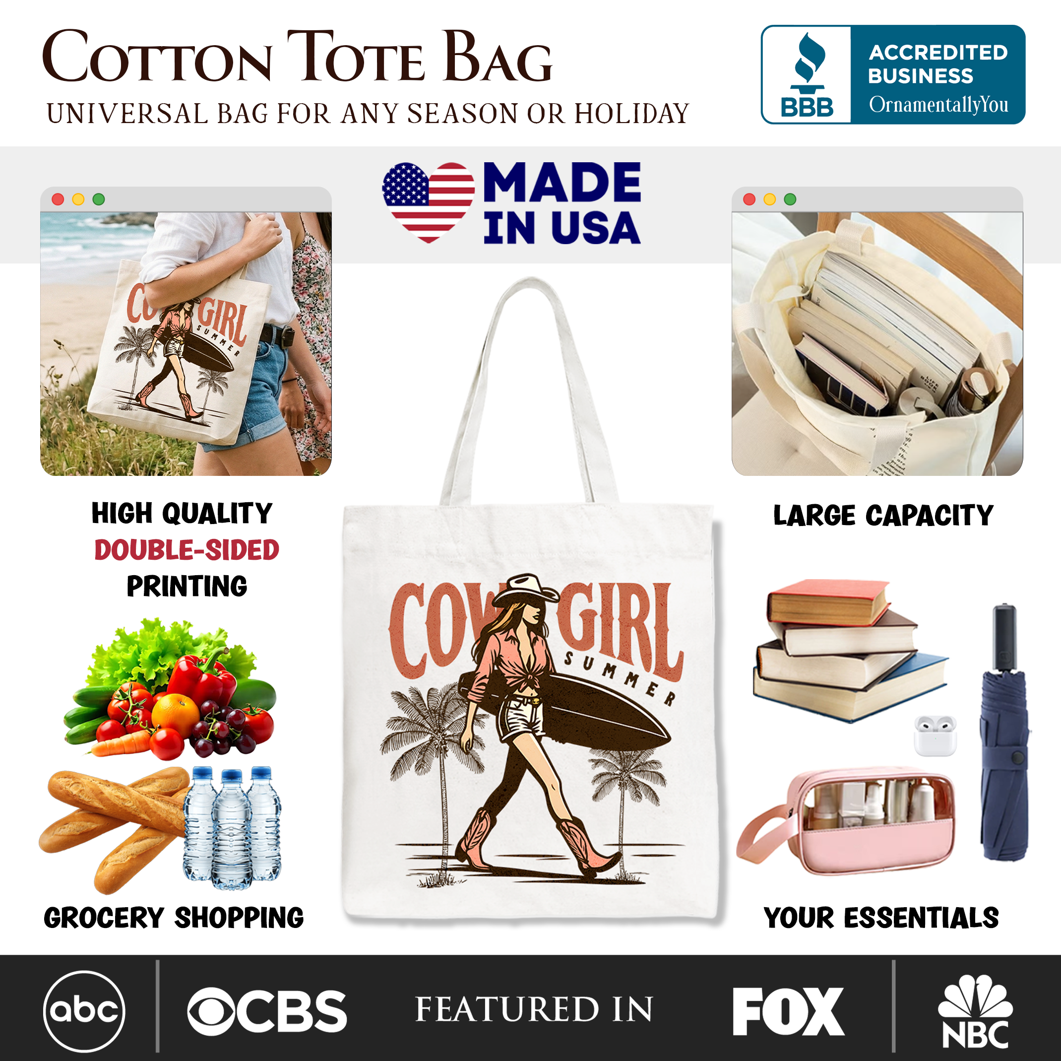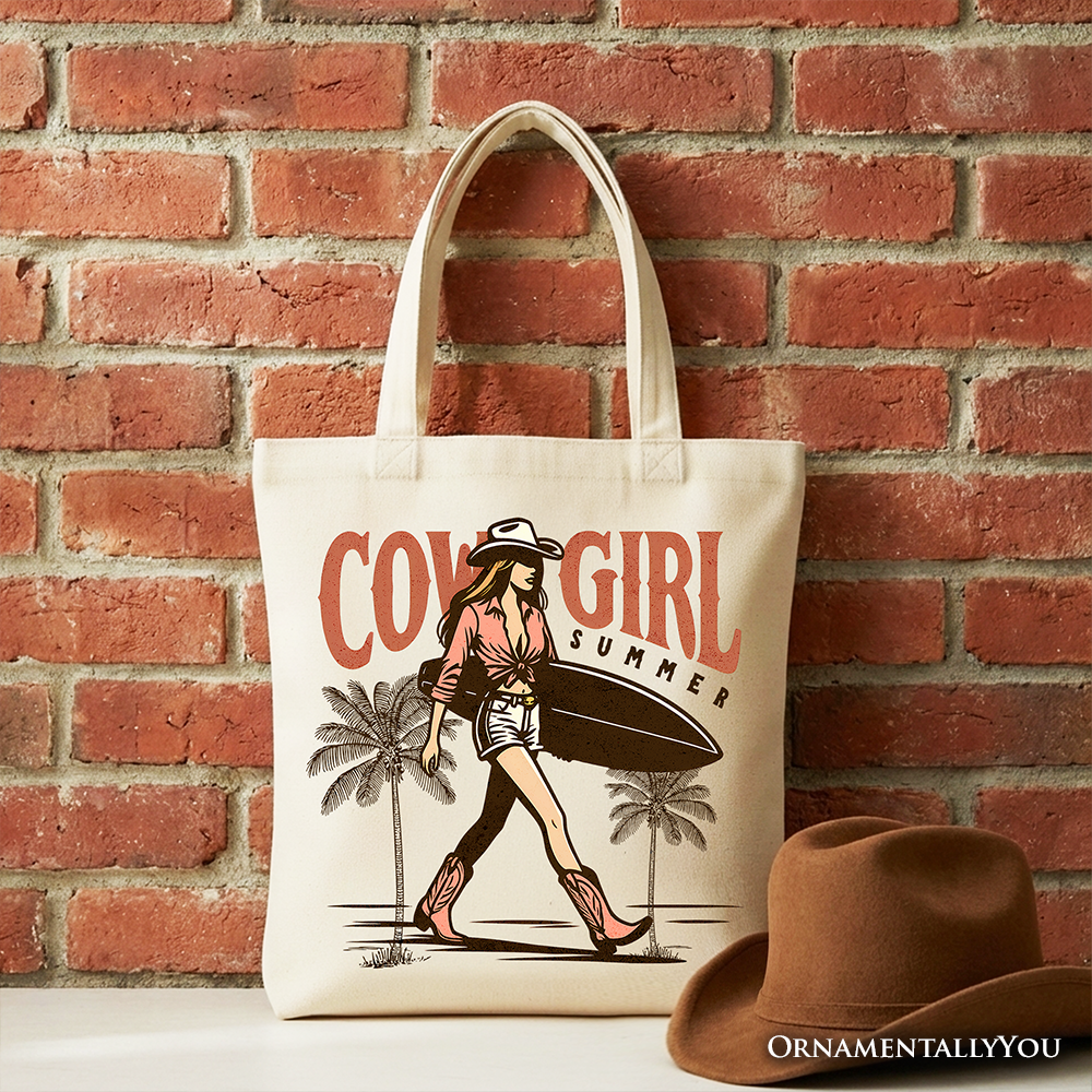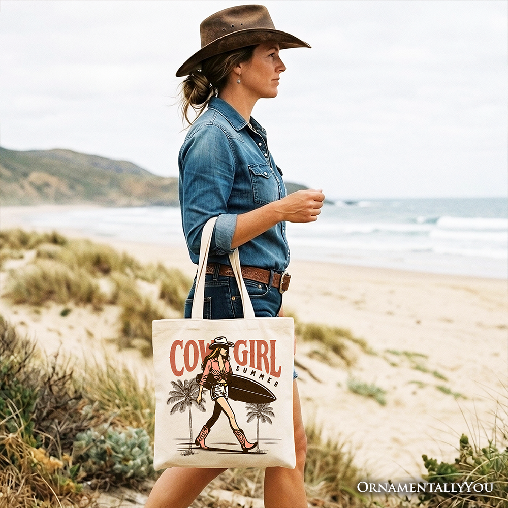 Cowgirl Summer Surf Tote Bag, Retro Western Beach Gift Shopper for Free-Spirited Women