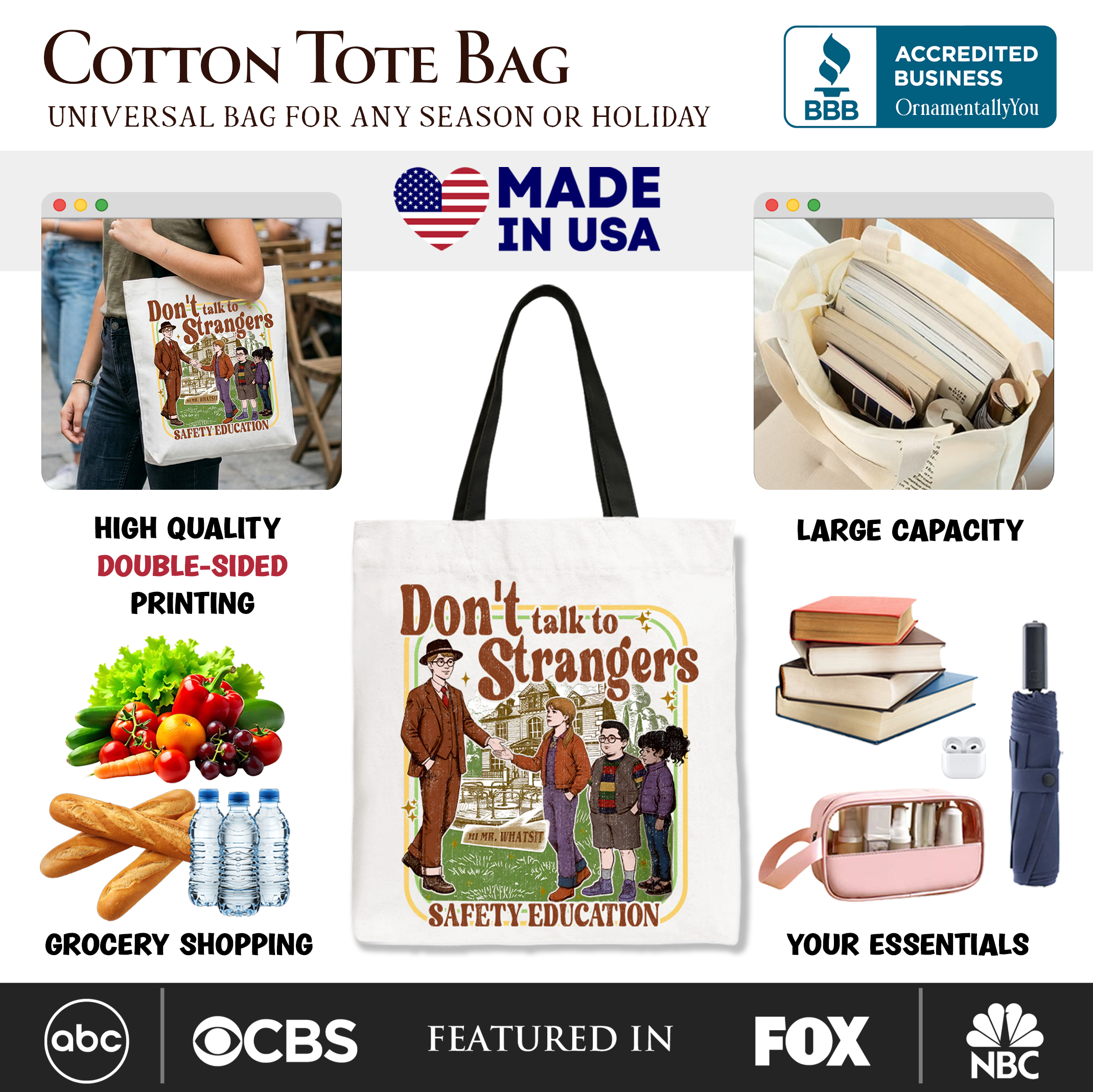 Don't Talk to Strangers Safety Education Tote Bag, Retro Funny Gift Shopper