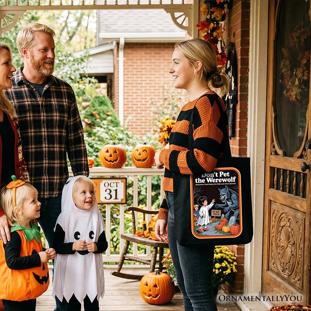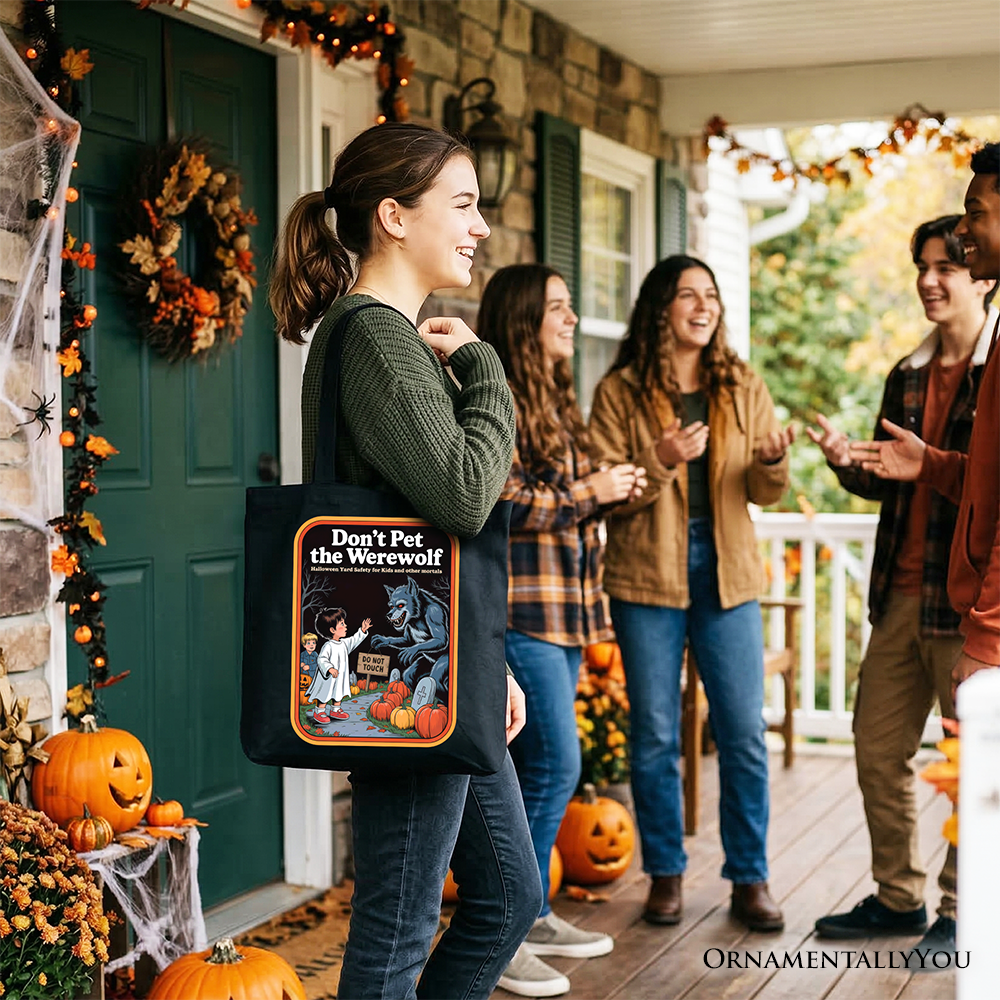 Don't Pet the Werewolf Tote Bag, Retro Funny Halloween Gift Shopper