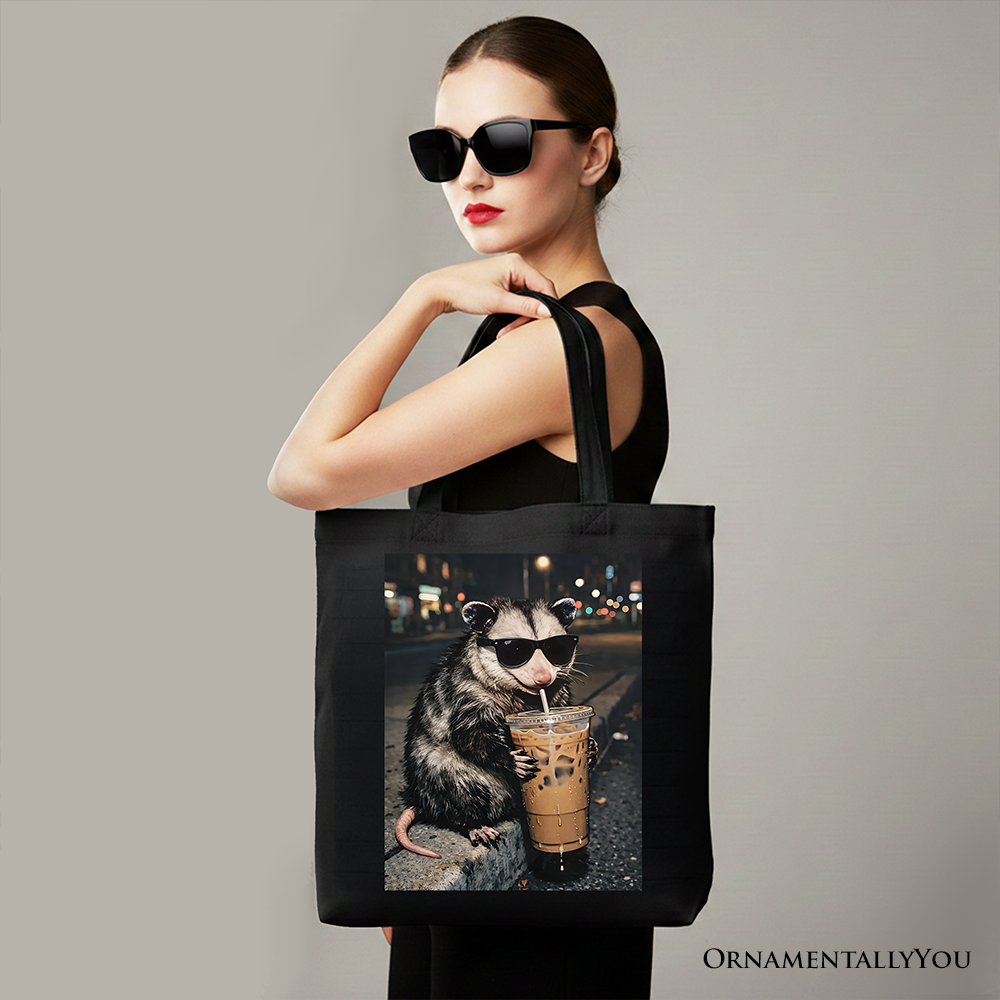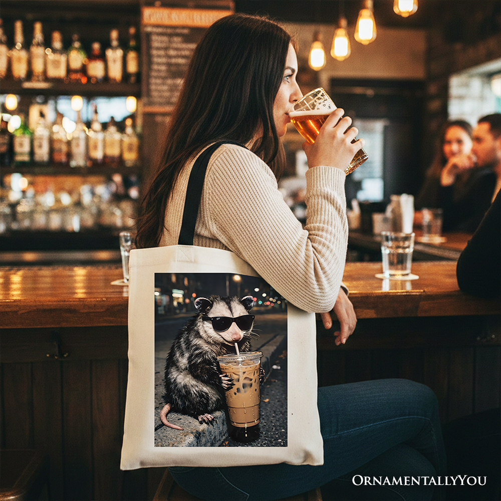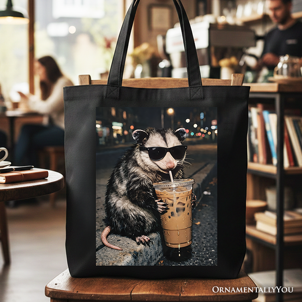 Iced Coffee Opossum Tote Bag, Funny Animal Meme Gift Shopper