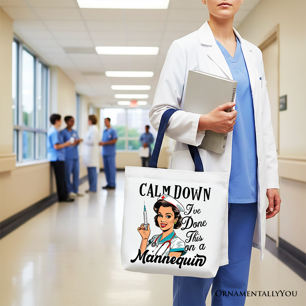 Sassy Nursing School Tote Bag, Calm Down I've Done This on a Mannequin Gift Shopper