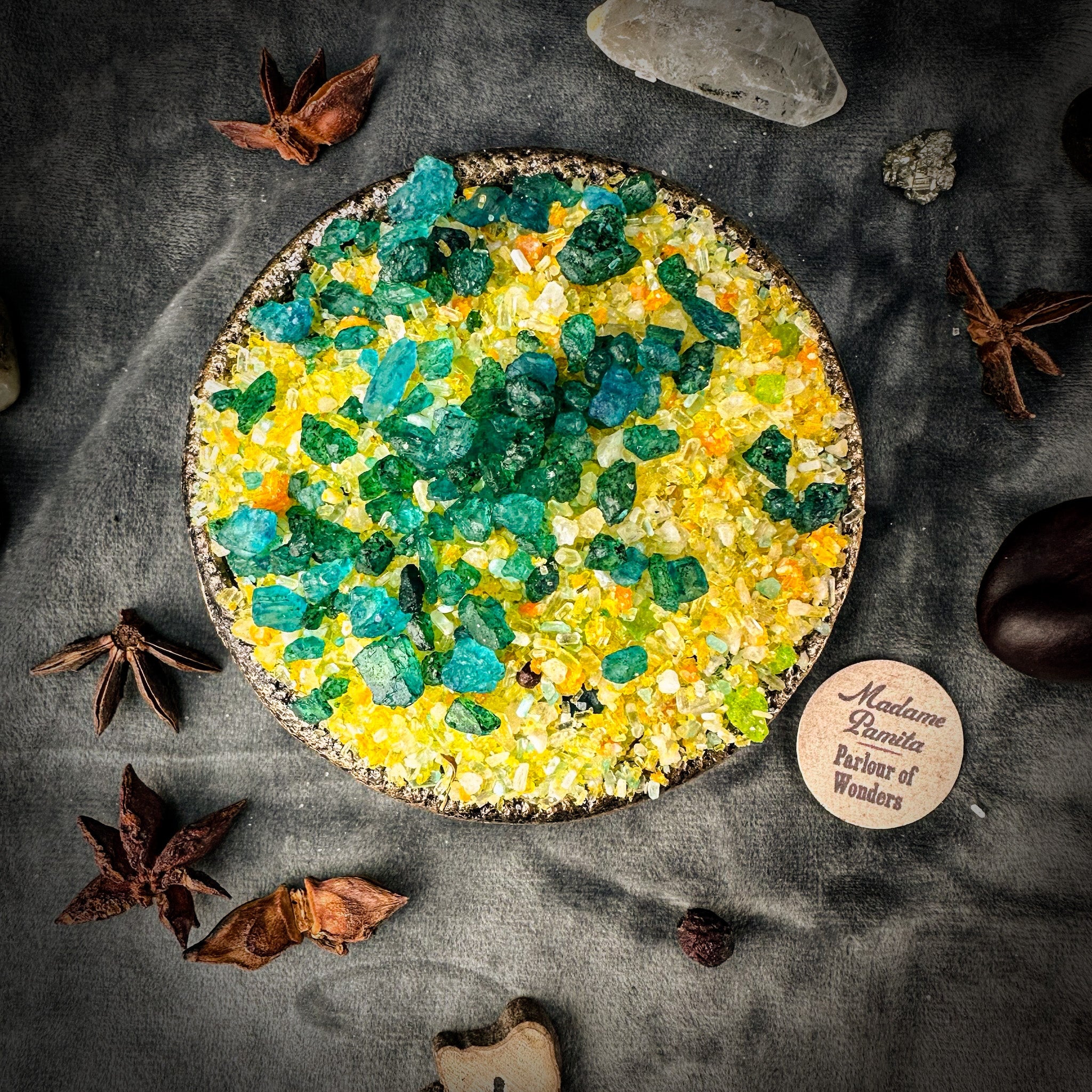 Spiritual Bath Crystals are a traditional magical tool used to clear negativity, protect or draw in a specific intent. These spiritual baths and washes have a quality of clearing out what needs to go and bringing in something better.