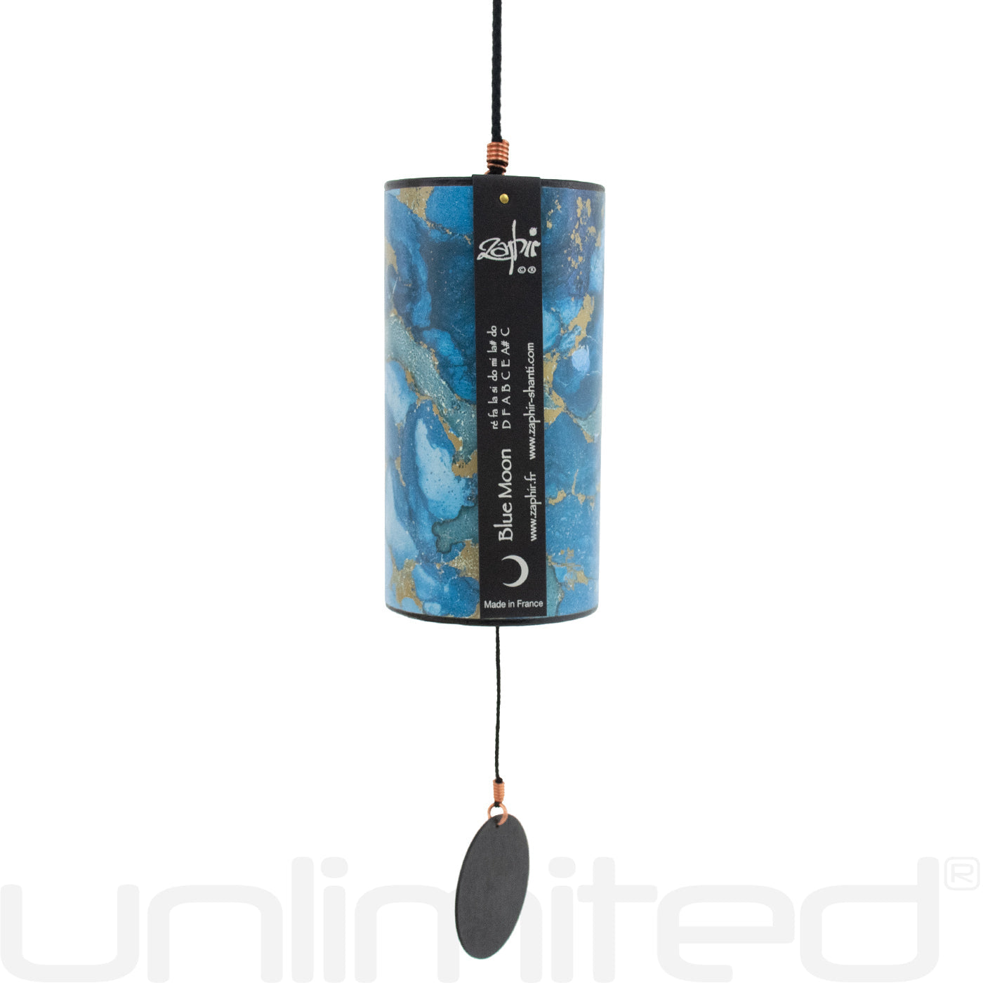 Each Zaphir Chime rings a series of 8 notes based on the 8 metal rods inside which differ for tone length. The Blue Moon Chime in particular consists of: D F A B C E A# C.