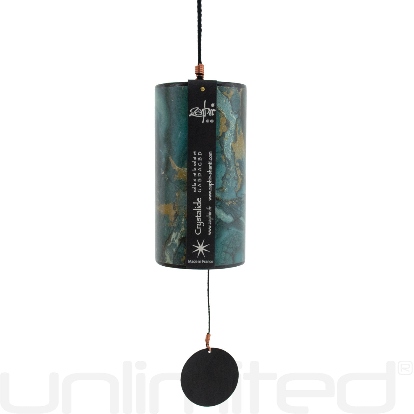 Each Zaphir Chime rings a series of 8 notes based on the 8 metal rods inside which differ for tone length. The Crystalide Chime in particular consists of: G A B D A G B D.